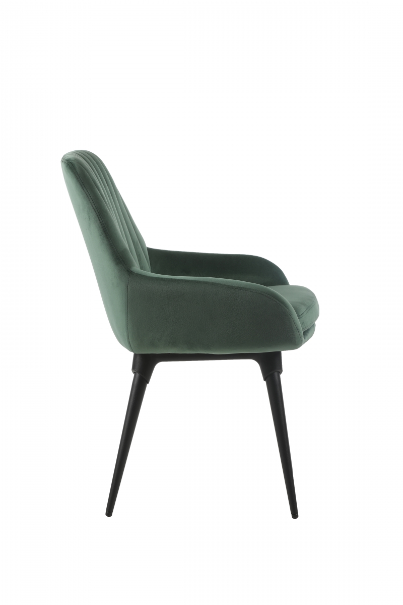 Sedež in naslon sta ergonomsko oblikovana, kar omogoča udobno sedenje tudi dalj časa, medtem ko oblazinjenje iz kakovostnega in trpežnega žameta prinaša pridih prestiža in razkošja v vašo jedilnico ali pisarniški prostor. Žametna površina je prijetna na dotik, topla in mehka, hkrati pa odporna proti gubanju, kar zagotavlja, da bo stol dolgo ohranil svoj brezčasni videz. Izraziti šivi dodajo subtilen, a prefinjen detajl, ki poudari elegantno obliko stola.
