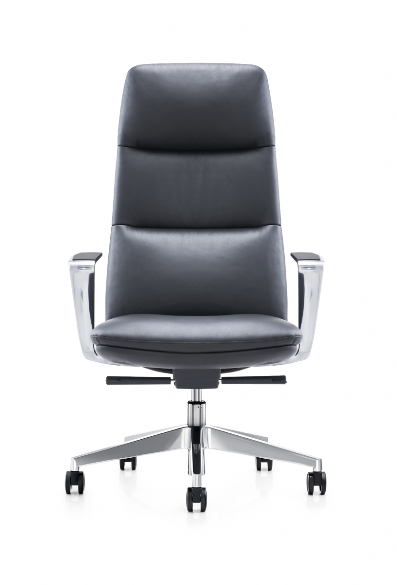 Sedež in naslon sta oblazinjena v pravo usnje, ki prijetno objeme telo in zagotavlja občutek razkošja ob vsakem dotiku. Oblazinjenje je izredno mehko, a hkrati dovolj čvrsto, da nudi odlično oporo hrbtenici ter omogoča udobno sedenje skozi ves delovni dan. Visok naslon zagotavlja popolno podporo tudi višjim uporabnikom, kar omogoča sproščeno držo in zmanjšuje napetost v vratu ter hrbtu.