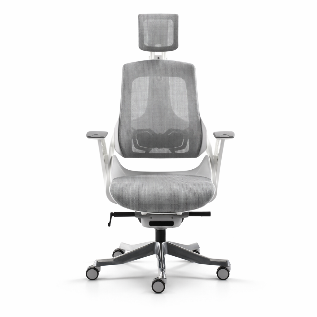 Stol Wau je na voljo v belem ogrodju s temno sivo mrežo, kar izraža profesionalnost, prestiž in brezčasno eleganco. S svojo dovršeno obliko se brez težav poda v vsako sodobno pisarno ali domači delovni prostor ter mu doda pridih stila in sofisticiranosti.